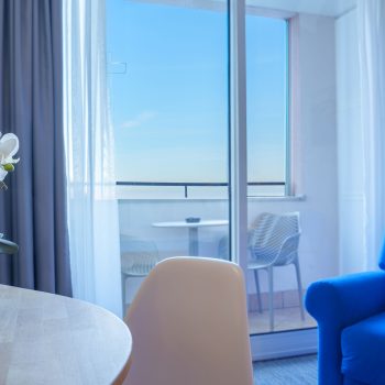 Vse hotelske sobe imajo balkon s čudovitim razgledom in so opremljene s telefonom, LCD televizorjem, klimatsko napravo, brezžično internetno povezavo, sefom in kopalnico s tuš kabino. Vse sobe imajo tapison.